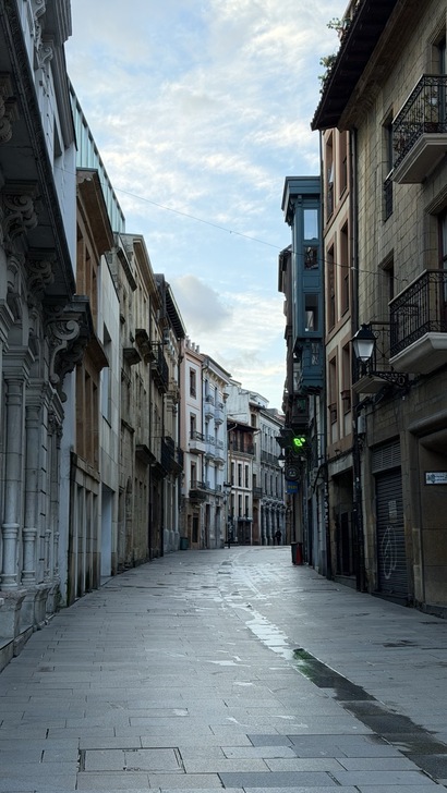 清晨(九點鐘)的街道上沒什麼行人,倒是發現一輛灑水車在沖洗街道。回想起來,Oviedo 大概是這次旅行途中最乾淨的一座城市了。