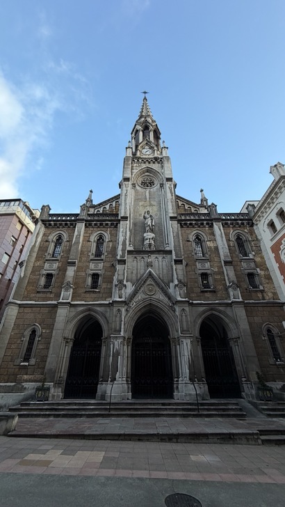 路過一座教堂。查了一下,這座是耶穌聖心堂 (Iglesia del Sagrado Corazón de Jesús)。這裡曾經有座修道院,據說以前是原始之路的起點。如今的教堂在1903年落成,修道院的部分在1970年代拆除,如今是個購物中心。教堂內部聽說也很漂亮,可惜不知道開放時間,今天只能看看外觀。