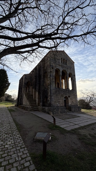慢慢地接近地圖上的目標。一個岔路口,右邊通往納蘭科山聖瑪利亞教堂,左邊通往一個小型的展示館,介紹亞斯圖里亞的前羅馬式建築。因為教堂的參觀時段即將開始,所以先往右邊走。