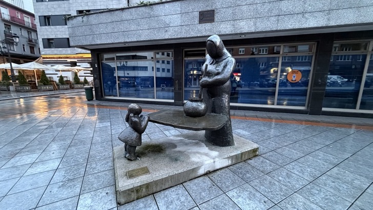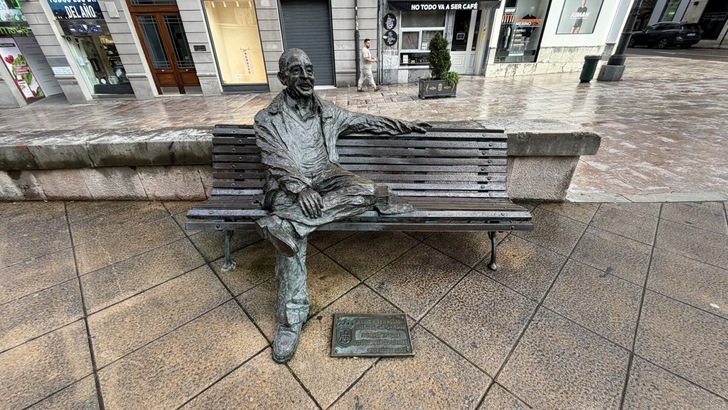 (教堂前的 Luis Riera Posada 銅像。Oviedo 第一位民選的市長)