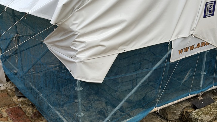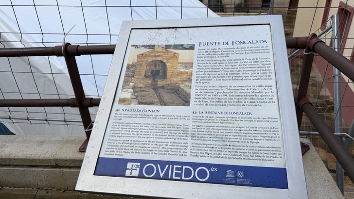 預定清單上最後剩下羅馬時代泉水遺跡,Fuente de Foncalada,豐卡拉達泉。照著地圖走去,卻發現周圍被施工帆布圍了起來。原來是要進行研究調查及修復工程。真是不巧。