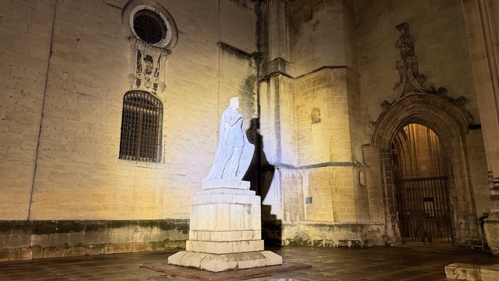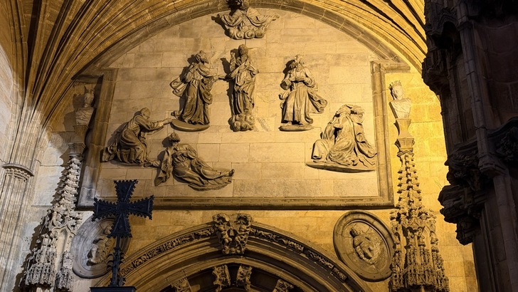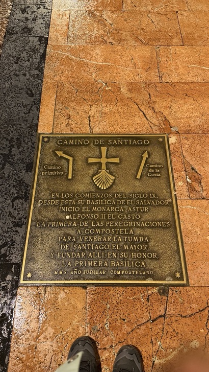 教堂入口左邊,有座阿方索二世的石像。就是他去找聖雅各的遺骨,才有了原始之路。