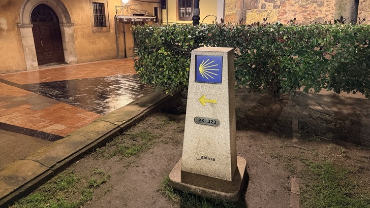 再往前一點,有個朝聖之路的里程碑。323公里,這就是這次旅程要走的距離吧。