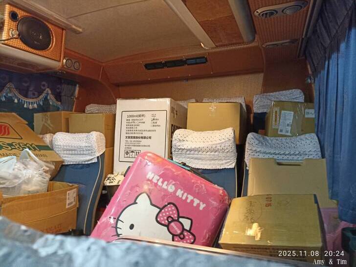 物資推滿遊覽車的後半部