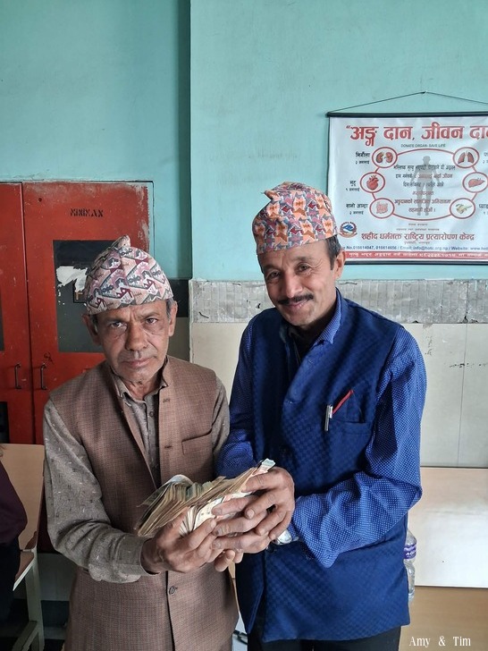 台灣朋友募款的5萬盧比,由老校長轉交給媽媽的先生。