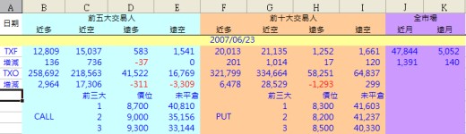 少了外資的參與,成交量明顯縮小,但相較之前還是好一些了;今天的未平倉偏空,若星期一沒破8740,短期多方才有優勢,若昨天有留空單,星期一要特別留意;但再幾天摩台要結算,所以要急漲的機會應不高。