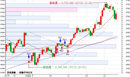 今早看到美股跌2百多點,有點耽心,但開盤後不久就知道昨天的成交量一點都不過份;今天第一次試著用大台當沖,其實心態還不大適應,雖然當沖結果是正的,還需再加強!而後來下單竟然把買下成賣~Orz~摩台還是續弱,已經是第三天了,部位可能要適度調整…價格區間調為[9857~9637]