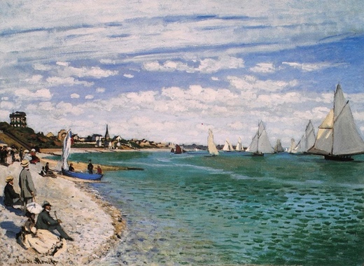 大概是因為我自己是在海邊長大的孩子吧!所以對畫海景起家的莫內(Oscar Claude Monet, 1840-1926)一直覺得有無比的親切感!鹹鹹的海風伴隨著轟隆的濤聲迎面撲來,舔舔嘴唇都會嚐到大海的味道: