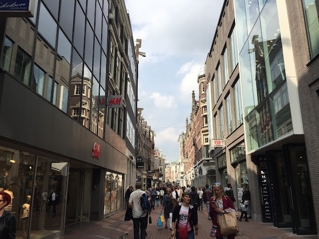 無論什麼時候,人潮總是絡繹不絕。萊頓廣場(Leidseplein)與水壩廣場(Dam)絕對是阿姆斯特丹著名的商業中心。購物商場、酒吧街道、還是歷史建築物、博物館展覽,是阿姆斯特丹室內首屈一指的標誌。水壩廣場,斑鳩壯觀的阿姆斯特丹王宮,擁有三百多年的歷史。從1655年的市政廳,到現在的荷蘭王室三大王宮之一。毗鄰的新教堂(Nieuwe Kerk),19世紀原址重建,具有新哥特式元素。水壩廣場南側,是杜莎夫人蠟像館。還有一條繁忙著購物街,名為卡弗街(Kalverstraat),年輕人愛去的地方,快速時尚品牌琳琅滿目。在水壩廣場的東側,則是國家紀念碑,遊客愛聚集的中心點。