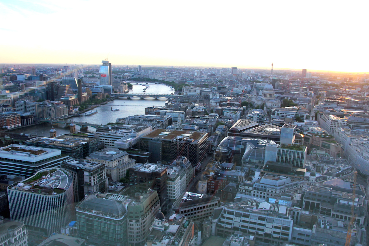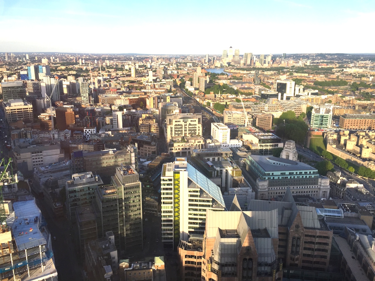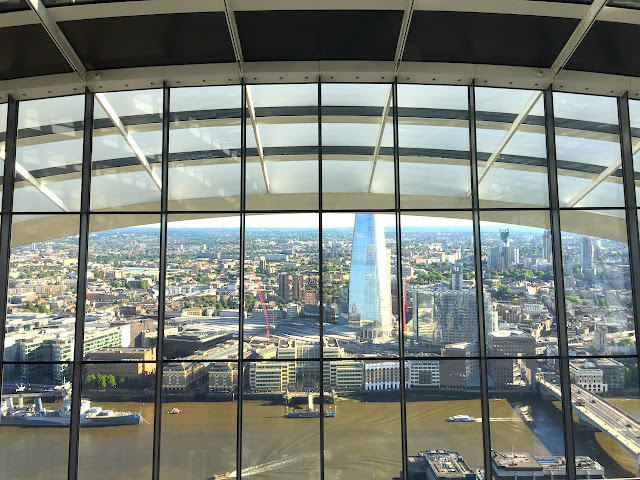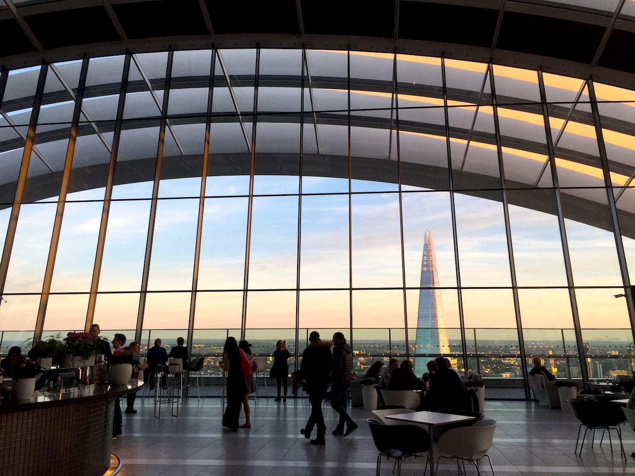 眺望城市天幾眼,新與舊的倫敦。泰晤士河的美,美在河畔兩旁的建築,美在每一條橋樑鏈接兩岸。大都會,顧名思義,城市的密集度高,現代建築萬丈高樓,古建築依舊完美無缺。空中酒花園的氛圍,浪漫迷人,簡直被融化了!前方的最高樓,碎片大樓。左邊的倫敦塔橋與倫敦塔。右邊的聖保羅教堂、倫敦眼、大笨鐘,一目了然!360度,空中花園絕對的佳地,欣賞倫敦。