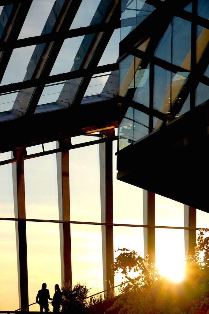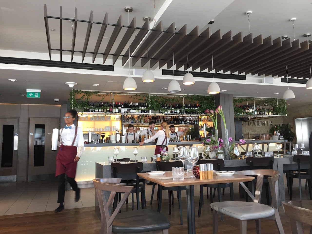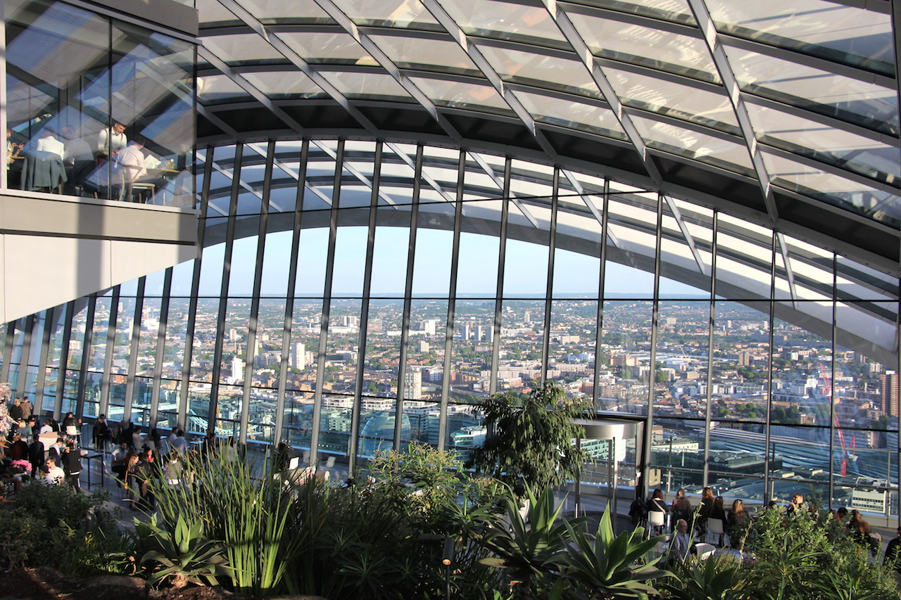 空中花園(Sky Garden),34樓至37樓,步出電梯,四周綠意盎然。芬喬奇街20號高樓,坐落倫敦大橋附近,外型,似一把“無綫對話機”。寬闊的觀景台、陽台、情調的酒吧、高級餐廳,對外開放。在倫敦,做一件品味兼悠閒的事。預定36樓的餐廳-Darwin Brasserie,約定的時間不能遲到,搭上倫敦捷運,奔向芬喬奇街20號高樓。