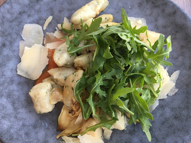 餐桌上的英式蘆荀,奶油與蠶豆搭配,草本的調味料,香與脆。主菜,點了乳清餃子的義大利麵,搭配削薄牛油與菠菜,別有一般的義大利麵。這樣的場合,怎麼可以缺少醇濃的“紅酒”?餐廳的音樂,百老匯的爵士樂,似陶醉,似昏睡!