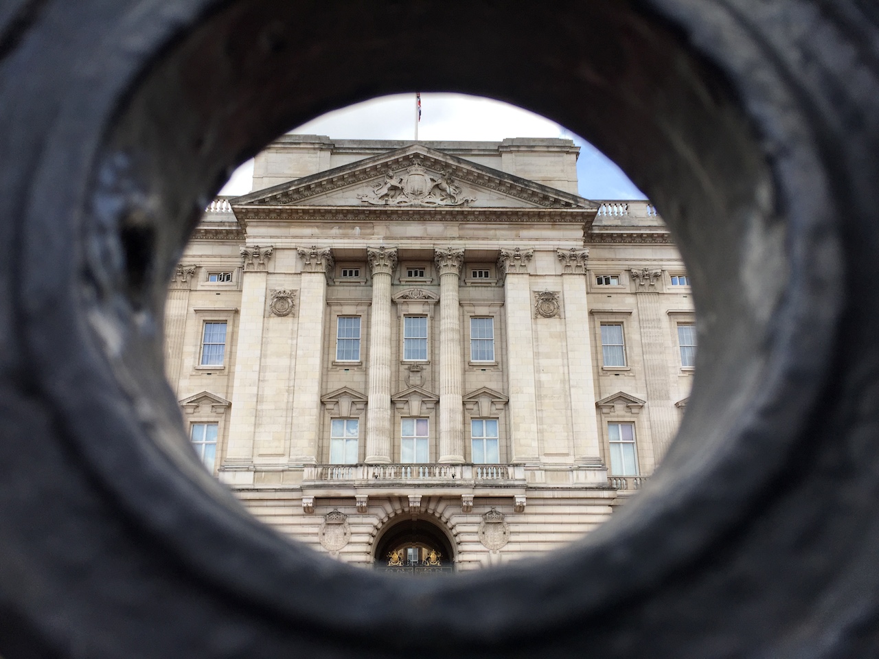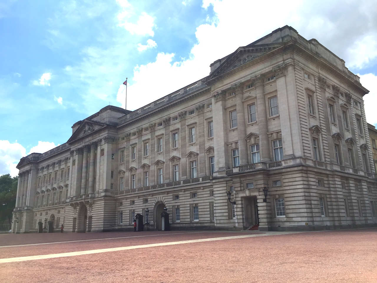白金漢宮,也是倫敦標誌性的建築物之一。如果旗桿上飄揚的是英國國旗,這表示女王不在宮內;白金漢宮中央頂上掛的是君主旗,表示你跟英女王的距離,只是幾步之遙,英女王在宮。