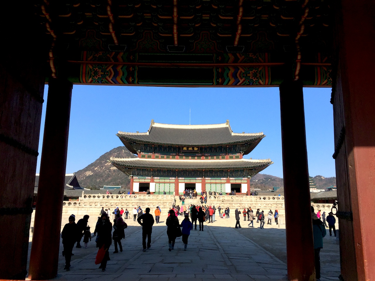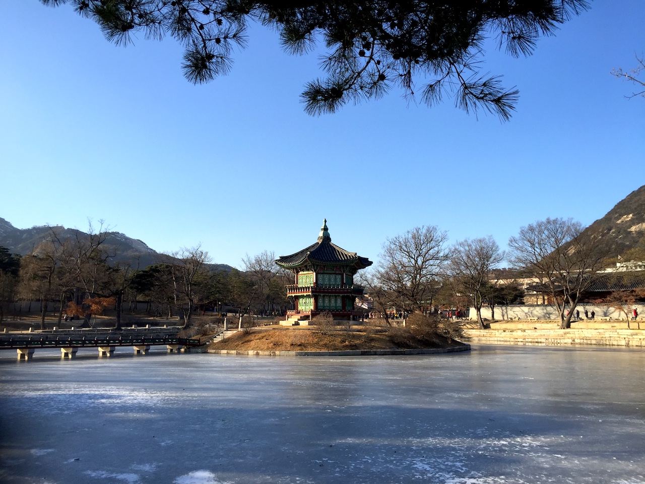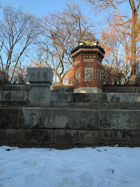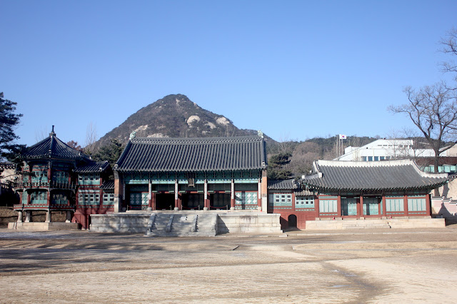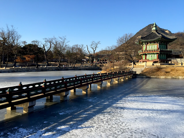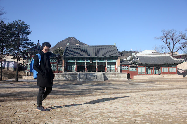 冬有雪,湖泊凝結,沒有一點漩渦。烈陽的照射,光的反射閃閃。即使陽光普照,但,風吹來時,寒冷冰凍,並非皇宮陰沈,毛骨悚然。湛藍的天,徘徊在景福宮,各宮殿走一遍,感受朝鮮帝王政務禮儀的殿堂、後庭王妃王子的居所、與宮內的御花園等。