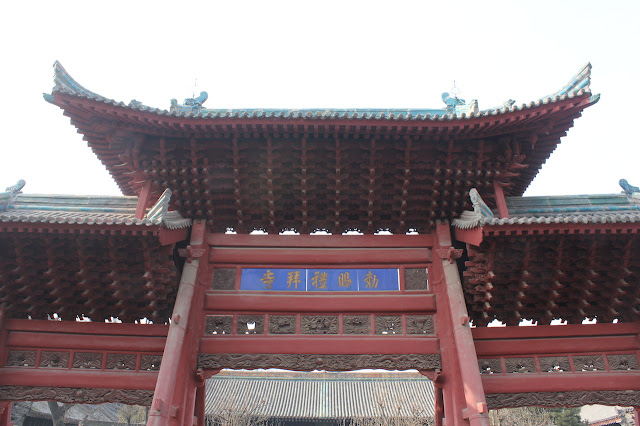 朱色的木質大牌坊,建於17世紀,矗立在磚雕照壁的對面,異角飛檐、斗拱層疊,普遍上都會出現在中國的寺廟。