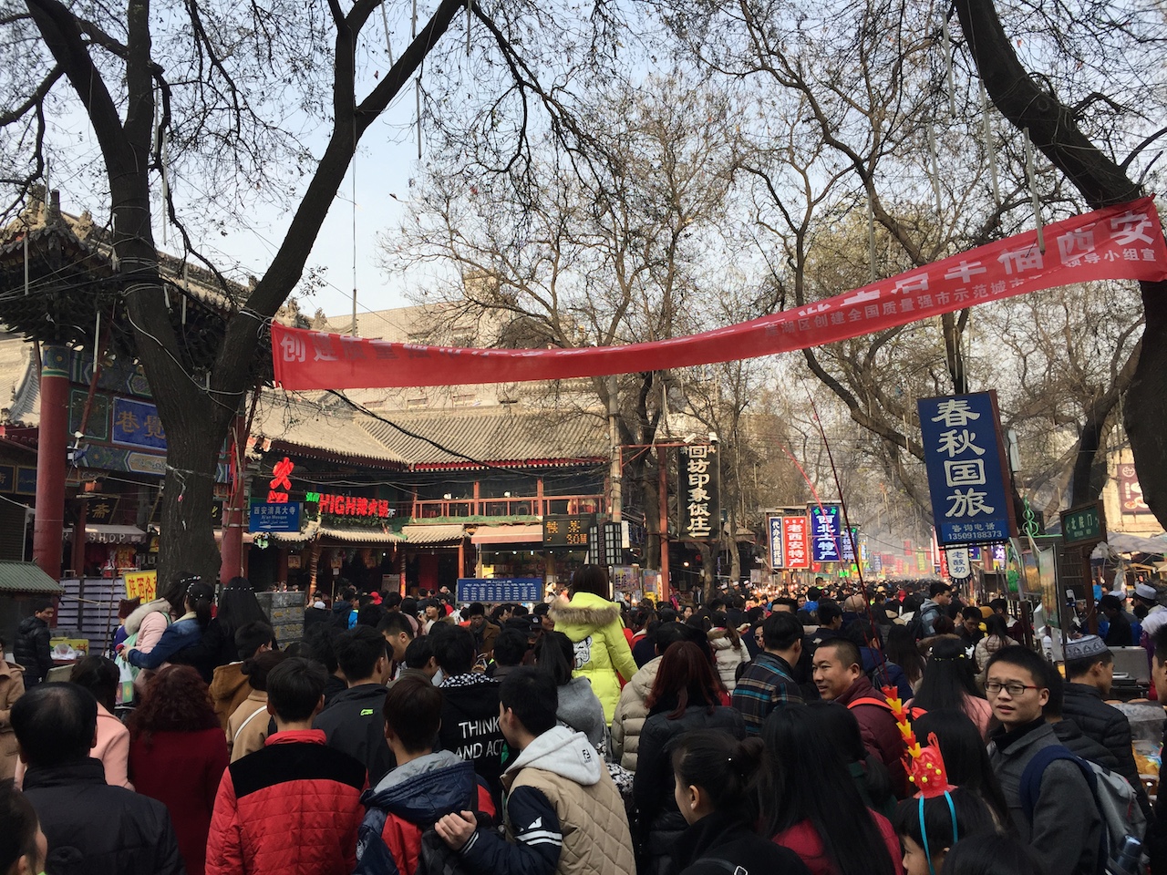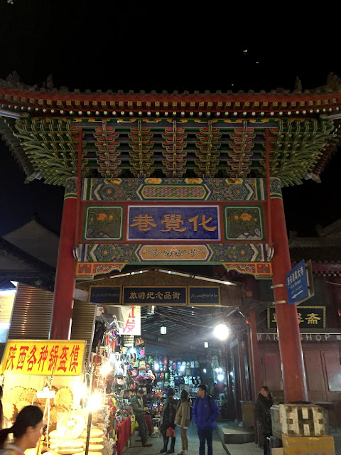 人潮洶湧的回坊老街,一股羊騷味撲鼻而來。老街口右邊,即鼓樓西北隅,中國牌坊寫著“化覺巷”,巷內有一座歷史悠久、古色古香的西安清真大寺。