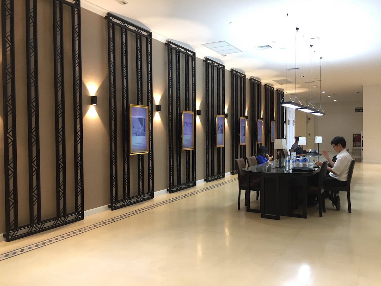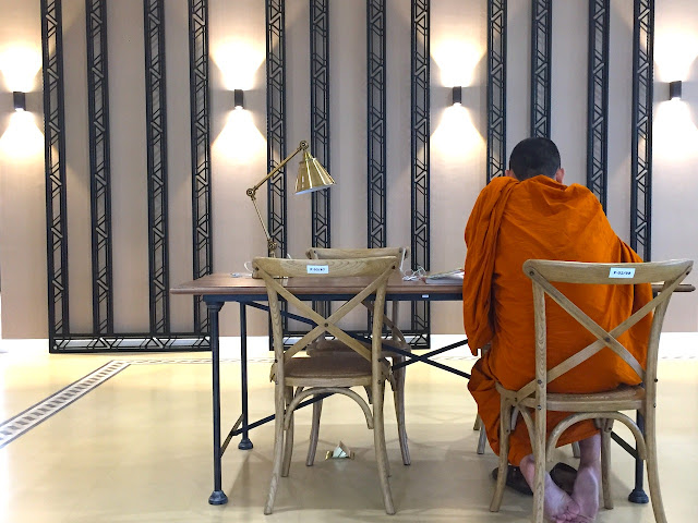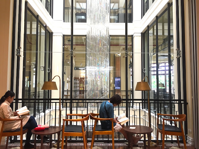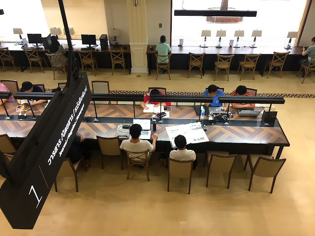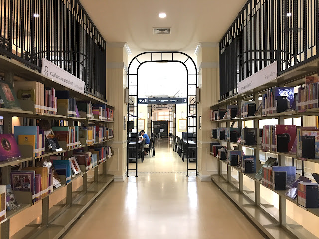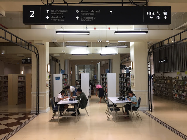 旅行,誰會去圖書館?曼谷的城市美學,讓人驚嘆,再添景色。窗外車水馬龍,寧靜的角落。黃色的外牆,室內也是如此,顯得更加光亮。曼谷城市圖書館,座落在著名的考山路前,靠近民主紀念碑。夜晚的考山路,馳名中外,如此熱鬧,是旅客聚集的一條街。但文青者,別忘了這間濃濃書香氣息的圖書館,舒適的氛圍,結合東西方的設計,一定要朝聖。四層樓的圖書館,每個樓層的設計都截然不同,桌椅陳列舒服、典雅的裝潢、復古的氣息、光澤明亮的空間。喜歡四方形的螺旋梯設計;各個角落的桌椅擺放多樣;還有遼闊的展覽廳;喜歡雜誌的範圍,非常吸睛,鏤空式的概念,可以直望四樓。最重要,這是免費入門的城市圖書館。