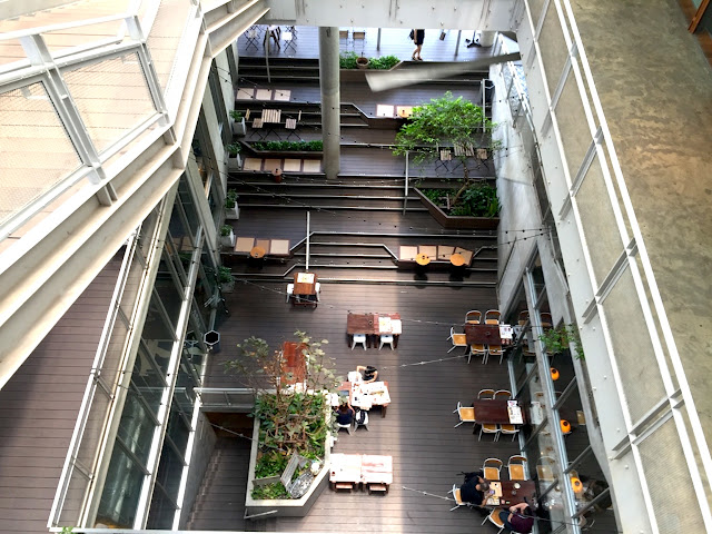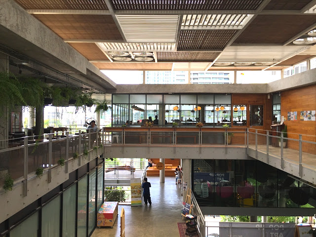 喜歡工業風與綠化的建築物,外觀新穎的設計,乍看之下,還以為是一座藝術館。鏤空的構造,每一層各有獨自的概念。最了得莫過於,頂樓的庭院,一片翠綠的空間,吹著大自然的空氣,享受曼谷的豔陽。那,還要走入Roaster咖啡廳,品嚐它家的主菜單、也別忘了香淳的咖啡。The Commons,絕對是文青的好去處。空間不大,卻營造出現代化的商場。美食雲集、情調的咖啡館、精致的餐廳、巧思的禮品店等。值得推薦,在一個閒暇的空間,過著愜意的午後。