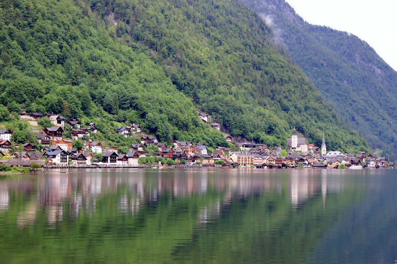 湖光十色,依山環繞。列車開進哈爾施塔特時,風景水碧山青,清水波光粼粼、翠綠的高山,頂部堆積著白皙的雪。最美的湖泊小鎮,即便是多雲細雨天,風景也讓人愛不釋手,每一處在相機的拍攝,皆能捕捉出優美的畫面。山谷中,依湖而建的小村落,襯托出引人入勝的 景色。靜謐的小鎮,坐在空曠的草地上凝視,如此幸福,過著一種漫活的步調。旖旎風光,無論是南面,或是北面,畫面皆賞心悅目。回家後,哈爾施塔特的魅力確實魂牵梦绕。