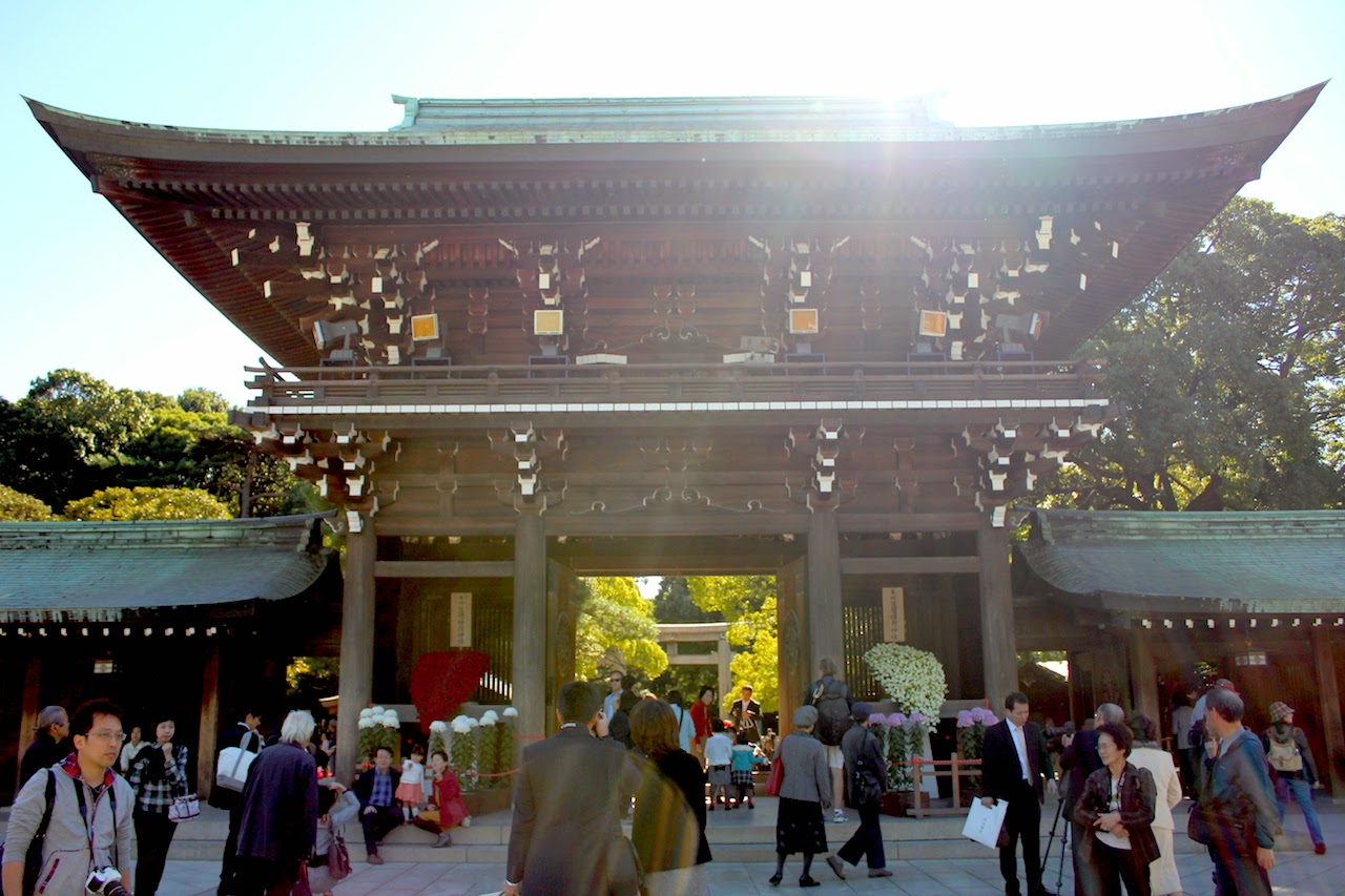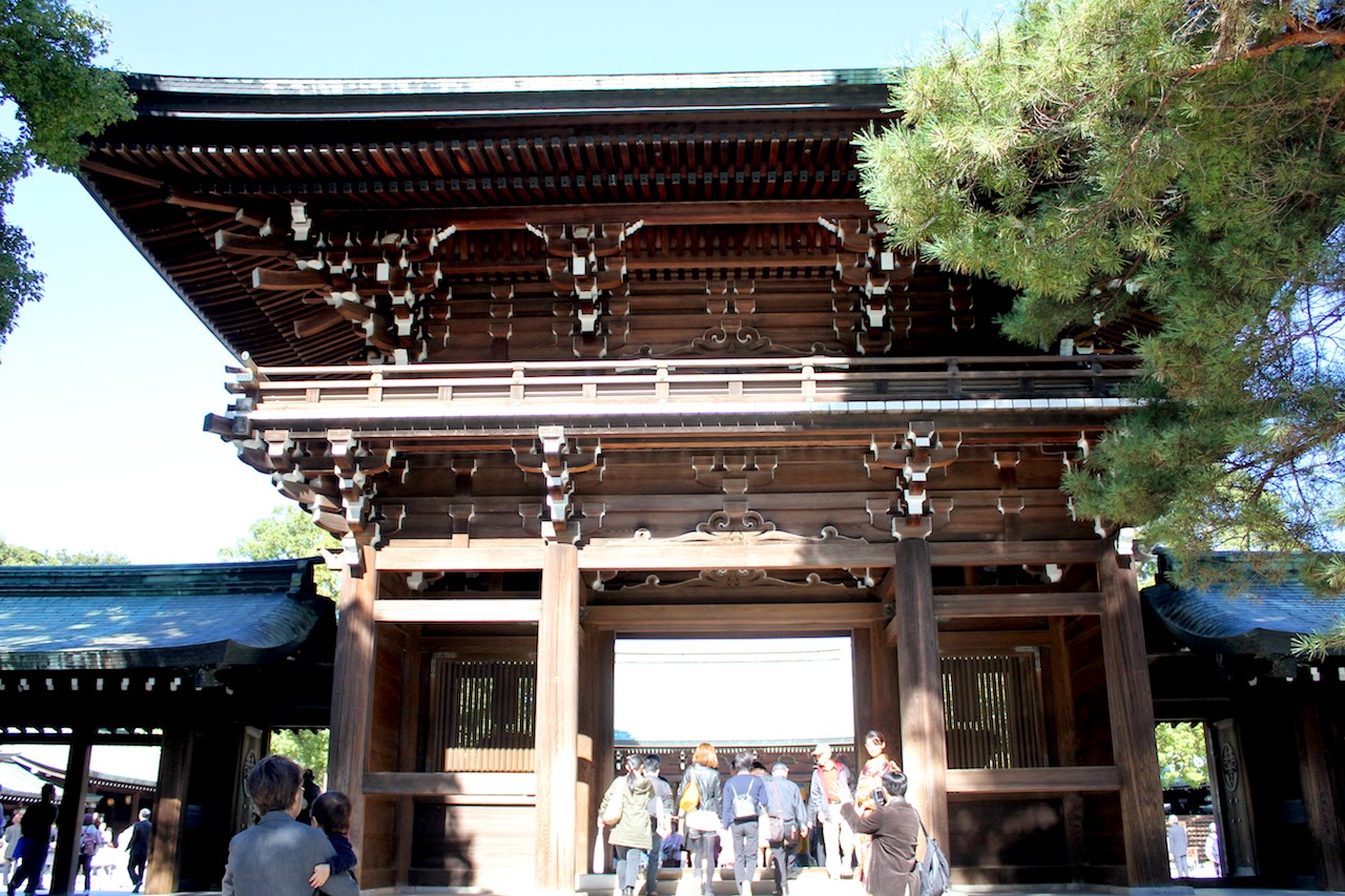 搭JR山手線(Yamanote)到原宿駅,是最靠近明治神宮,當然方便。明治神宮,啟用於1920年,仍供奉明治天皇及昭憲皇后的靈位神社。1945年4月14日,明治神宮的主要建築在第二次世界大戰中被炸毀,1958年11月重新建造完成。 在日本神道教傳統中,將重要人物供奉為神明相當常見。