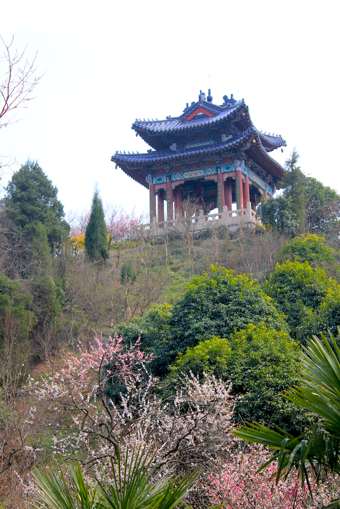 梅花山山頂,建有「博愛閣」正面橫匾上的「博愛閣」三字,選自孫中山手跡。站在「博愛閣」眺望山丘下的萬株情景,美不勝收,足以讓人愣住一整個午後。賞梅季節,慕名到來的旅客也,絡繹不絕。南京梅花山,絕對稱得上“第一梅山”。