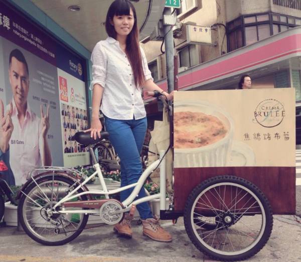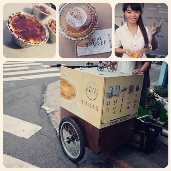 在學校的時候也常常有所耳聞他常常騎著腳踏車在信義區南港附近賣烤布蕾,