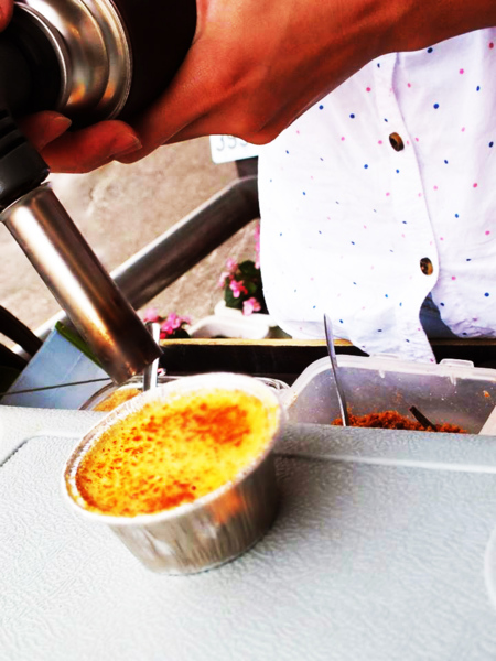 一到那邊就看到一個女生拿著噴槍在對著烤布蕾猛噴,