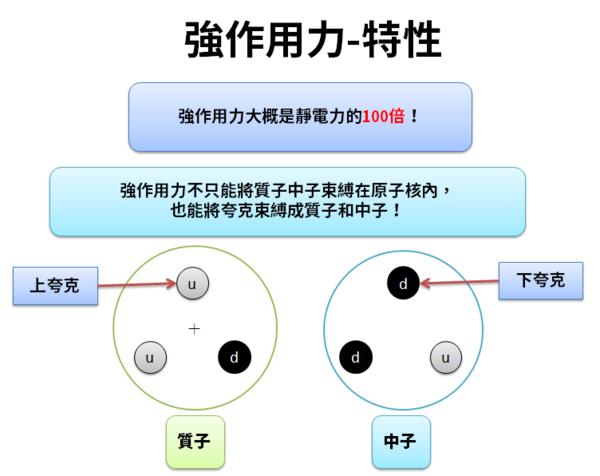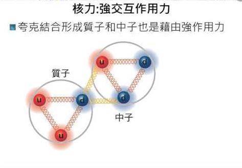 另外三種交互作用分別是重力、電磁力及弱交互作用。核子間的核力就是強交互作用。