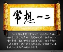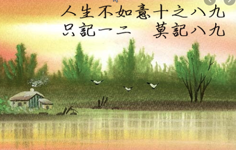 我們生命裡面不如意的事占了決大部份,因此,活著本身是痛苦的。但扣除八九成的不如意,至少還有一、二成是如意的、快樂的、欣慰的事情,我們如果要過快樂人生,就要常想那一、二成好事,這樣就會感到慶幸、懂的珍惜,不致被八九成的不如意所打倒了。」