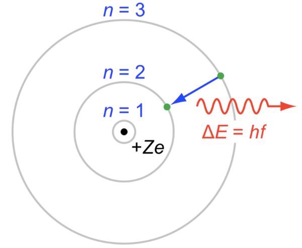 在一個原子系統可能所處的狀態之中,只有某些所謂的定態(stationary state)具有一種力學上無法解釋的奇特穩定性此輻射的頻率ν卻和原子內粒子的運動沒有簡單關係,而是遵守以下關係:hν=Ei-Ej。