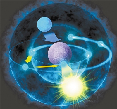 量子躍遷,是一個量子物理學中的術語。它是指電子從原子的一個軌道跳躍到另一個軌道上的過程,這一過程是不連續的,也就是不存在電子處於兩個軌道之間的狀態。