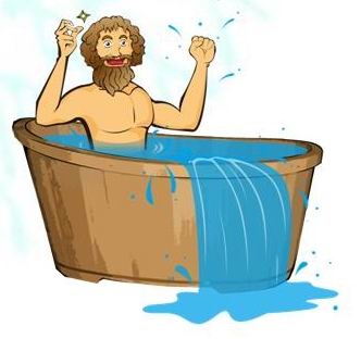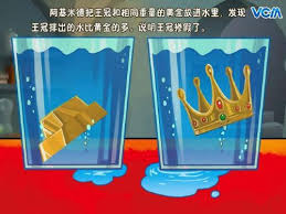 傳說希倫王召見阿基米德,讓他鑑定純金王冠是否摻假。他冥思苦想多日,在跨進澡盆洗澡時,從看見水面上升得到啟示。作出了關於浮體問題的重大發現,並通過王冠排出的水量解決了國王的疑問。在著名的《論浮體》一書。他按照各種固體的形狀和比重的變化來確定其浮於水中的位置,並且詳細闡述和總結了後來聞名於世的阿基米德原理。放在液體中的物體受到向上的浮力,其大小等於物體所排開的液體重量。從此使人們對物體的沉浮有了科學的認識。