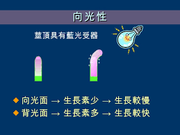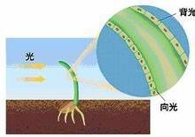 在部分植物中,莖部的正向光性是由一種由莖頂分泌的生長素造成的。受光的一面生長素合成受阻,背光的一面因此會含有更多的生長素並向下運輸。