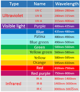 光子能量是跟頻率成正比 跟波長成反比,單一光子,光波長愈長能量愈低 -例如紅光,波長愈短能量愈高-例如UV紫外光。