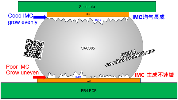 IMC是一種化學分子組成,所以IMC的形成必須給予能量,這也就是為何錫膏在焊接過程中需要加熱的原因。