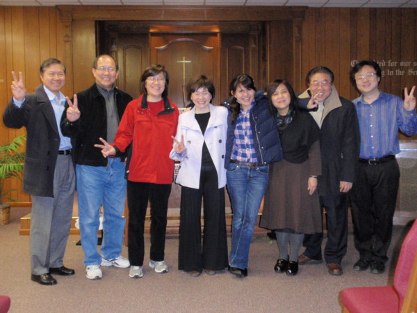 作者與同爲伯特利創辦人黃明發、周彼得夫婦及禱告中心代禱者在國際迦南聖經學院合影
