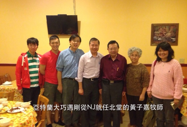 在很短的時間內,決定參予往南行的馬禮遜掛圖展,在去第一站亞特蘭大的路上,心裏叨念著要不要去拜訪剛離開NJ若歌教會的黃子嘉牧師,未料,抵達第一天在餐館用餐,黃牧師、師母就自動出現在我們面前,且據聞曾經有十幾個人從NJ,有的搭飛機,有的開車,陪著牧師過來亞特蘭大,其實我跟久仰的黃牧師一點兒都不熟,只是很想見到他本人。