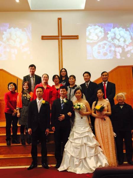 作者(新娘)婚禮當天與迦南聖經學院同學合影