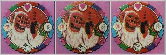 可惜白金剛大戰鐵甲炎龍的經典場面尪仔標並未印出來,只印了白金剛和背影史豔文、鐵甲炎龍戰中國強。