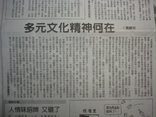 本投書獲刊於5/9中國時報時論廣場,請見《多元文化精神何在》一文。