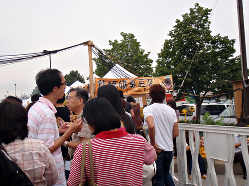 我們步行至夜市前已經聞到臭豆腐的香味. 哇哇!! 快速向目標前進.到達時已經有許多人. 當我們拿到一年一吃的臭豆腐很感動. 而且Amy姊還每份多2塊給我們!!! 這時候感覺靠關係是很爽的事.