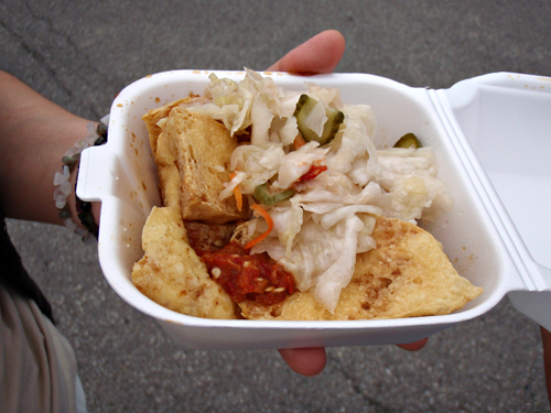 好吃的臭豆腐! 還有撈魚雖然一條都沒有,不過也很高興. 最難吃的要算是烤魷魚.