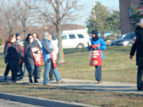 安省小學教師因為反對115條方案 工會決定從上星期輪流一天出走. 今天換成多倫多及其他地區共35000名公立小學一天的罷工 而且停止所有課外學習活動!