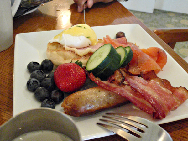 老爺享用了許多燻鮭魚! 還有Benedict egg也是入口即化 特別是上面淋的醬汁 回味無窮! 是我們嘗過最好吃的一次!