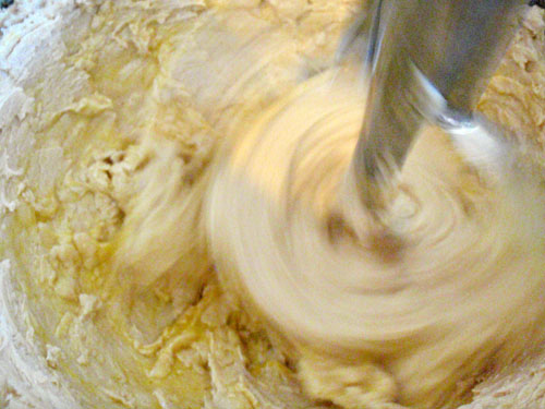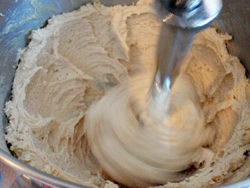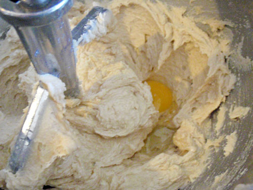 2. 奶油加糖打至發白後慢慢分次加入打散的蛋液.