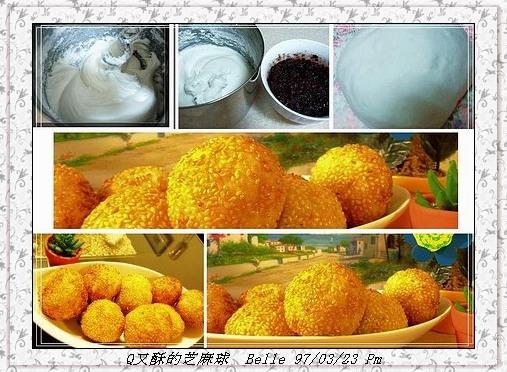 皮:糯米粉3杯、糖1/2杯,水1杯、白芝麻1杯