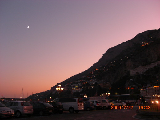 晚上的車只有兩種,一個往Sorrento,一個往阿瑪菲再過去的城鎮。往Sorrento的車又分兩條路,一條往我們住的Villa那條路,經過市中心車站,一條是反方向(忘記路名了)。我們也是搞好久,還差點坐錯車。最後認明車子前面掛牌要有寫往「綠色道路」via verde的公車才能上車,真是驚險萬分。不過,夜晚走山路,沿途不斷若隱若現的山城燈火,真的很漂亮。比滿天的星星還美。