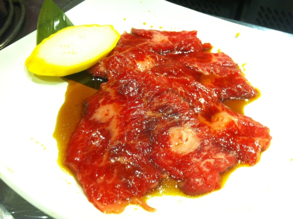 晚上七點, 我跟M在附近的微風國賓影城看完電影趕過去, Mark則很準時已經在燒肉店等我們了, 三個人都餓了, 到了馬上開始點菜。