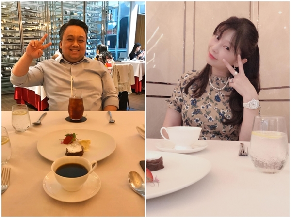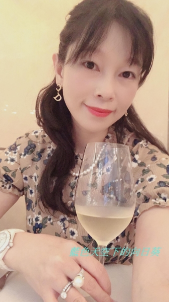 我們夫婦倆手中個一杯白酒,是餐廳招待的,謝謝餐廳的款待。