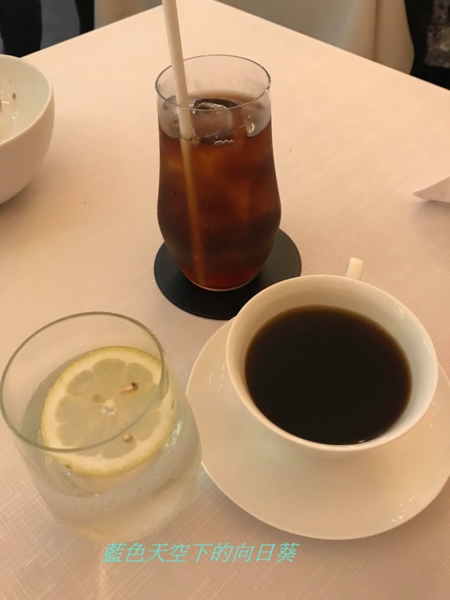 餐後飲品,我一如往常的點了黑咖啡,先生則是點了冰紅茶,第一瓶西班牙氣泡水喝完,我們又開了一瓶氣泡水。